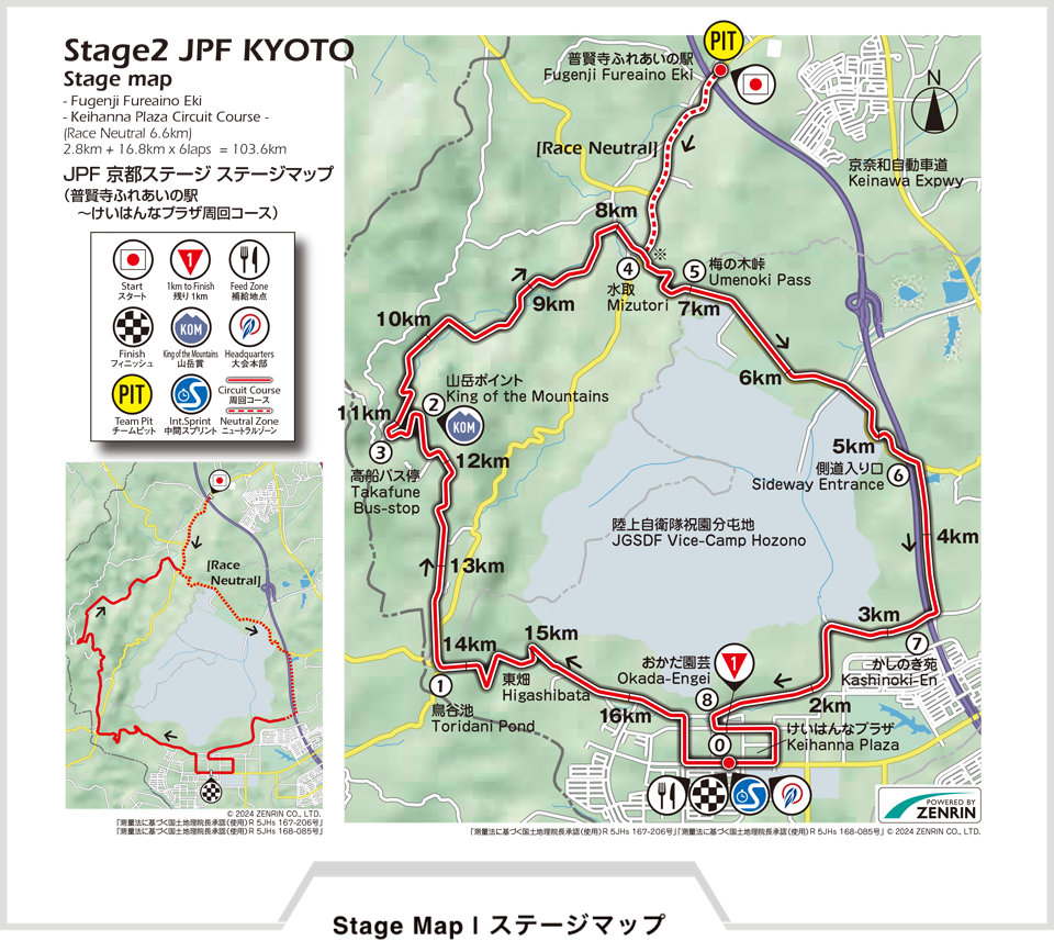 周回コースでは、緑豊かな丘陵地帯や趣のある田園風景が広がり、京都府南部の穏やかな自然を堪能できる。また、アップダウンが繰り返されるテクニカルなコース設計となっており、選手の駆け引きやチーム戦略が重要となる見応え十分な展開が予想される。