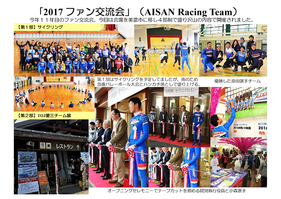 昨年からはじまった「ツアー・オブ・ジャパン ホームステージ」の「美濃ステージ ホームチーム」を務める「愛三工業レーシングチーム」の選手達も会場に駆けつけてくれました!約1時間のスペシャルトークショーに、小森亮平キャプテン、早川朋宏選手、住吉宏太選手の3名にご参加いただき、なめらかなトークで会場を大いに盛り上げてもらいました。