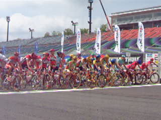 | 4th stage MOTEGI は、ツインリンクもてぎにおいて本日am9:30にスタートします。1周12.38kmを12周回し、最後は4.8kmの一般コースを走ってフィニッシュとなりますが、残り周回9,6,3の地点にスプリント賞が設定されています。 |